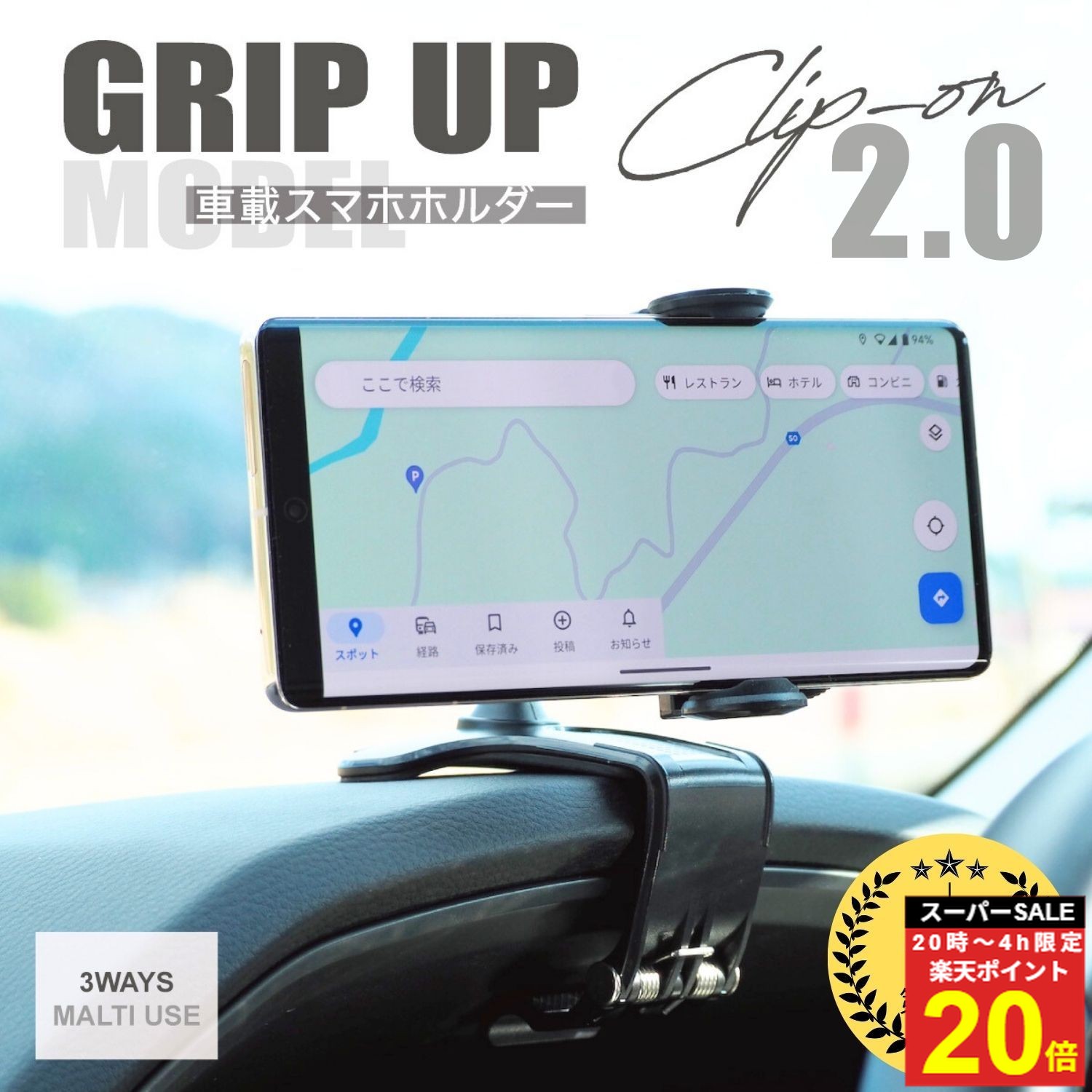 【3/4 20時~スーパーSALE!!期間中は最大P5還元】[累計販売2000個突破] LINE友達登録で300円OFFクーポン 車載ホルダー スマホホルダー 車 クリップ式スマホホルダー 回転 強力クリップ 車用 車用品 カー用品 スマホ スマートフォン スマホスタンド 車載