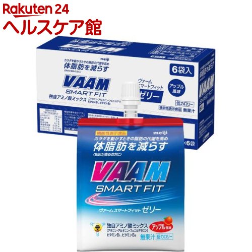 お店TOP>健康食品>アミノ酸>アミノ酸 タイプ別>アミノ酸 ゼリー>ヴァーム スマートフィットゼリー アップル風味 ボール (180g*6袋入)商品区分:機能性表示食品(E313)【ヴァーム スマートフィットゼリー アップル風味 ボールの商品詳細】●アラニン・アルギニン・フェニルアラニン混合物はスズメバチアミノ酸(V.A.A.M)の研究から生まれた、運動による脂肪の代謝に着目して選び抜いたアミノ酸ミックス。●運動による体脂肪低減効果のあるARFアミノ酸1500mgを配合した「機能性表示食品」●本品に含まれる3種類のアミノ酸から構成されるアラニン・アルギニン・フェニルアラニン混合物は、身体活動との併用により脂肪の分解と消費する力を高める働きがあります。●本品は、身体活動を増やすことによる脂肪の代謝をさらに上げ、体脂肪をより減らす機能があるので、BMIが高めの方に適しています。●おいしく手軽に摂取して、運動やアクティブな日常生活で体脂肪を減らすことが出来る。●おいしく飲みやすいゼリータイプ【保健機能食品表示】届出表示:本品には3種類のアミノ酸から構成されるアラニン・アルギニン・フェニルアラニン混合物が含まれます。アラニン・アルギニン・フェニルアラニン混合物には、身体活動との併用によりBMIが高めの方の脂肪の代謝(脂肪の分解と消費する力)をさらに上げ、体脂肪をより減らす機能があることが報告されています。【1日あたりの摂取目安量】1袋(180g)【召し上がり方】・カラダを動かす時に1袋(180g)を目安にお飲みください。・冷やすといっそうおいしくお飲みいただけます。【品名・名称】清涼飲料水(ゼリー飲料)【ヴァーム スマートフィットゼリー アップル風味 ボールの原材料】異性化液糖(国内製造)/酸味料、フェニルアラニン、乳酸Ca、アラニン、アルギニン、ゲル化剤(増粘多糖類)、香料、甘味料(スクラロース、ステビア)、V.B1、V.B6【栄養成分】1袋(180g)当たりエネルギー:26kcal、たんぱく質:1.6g、脂質:0g、炭水化物:5.0g、食塩相当量:0.05g、ビタミンB1:0.40mg、ビタミンB6:0.43mg機能性関与成分:アラニン・アルギニン・フェニルアラニン混合物:1500mg(アラニン:375mg、アルギニン:375mg、フェニルアラニン:750mg)【保存方法】・直射日光、高温、凍結を避けて保存してください。【注意事項】・多量摂取により疾病が治癒したり、より健康が増進するものではありません。1日の摂取目安量を守ってください。・本品は、事業者の責任において特定の保健の目的が期待できる旨を表示するものとして、消費者庁長官に届出されたものです。ただし、特定保健用食品と異なり、消費者庁長官による個別審査を受けたものではありません。・本品は、疾病の診断、治療、予防を目的としたものではありません。・本品は、疾病に罹患している者、未成年者、妊産婦(妊娠を計画している者を含む)及び授乳婦を対象に開発された食品ではありません。・疾病に罹患している場合は医師に、医薬品を服用している場合は医師、薬剤師に相談してください。・体調に異変を感じた際は、速やかに摂取を中止し、医師に相談してください。・開栓後は、すぐにお飲みください。・食生活は、主食、主菜、副菜を基本に、食事のバランスを。【原産国】日本【ブランド】ヴァーム(VAAM)【発売元、製造元、輸入元又は販売元】明治商品に関するお問い合わせは、下記までお願いいたします。受付時間:10:00-16:00(土日祝、メーデー、年末年始除く)おかし:0120-041-082一般食品:0120-370-369ベビー:0120-358-369栄養食品・流動食(メイバランス他):0120-201-369スポーツ(ヴァーム他)・美容・健康:0120-858-660飲料:0120-598-369リニューアルに伴い、パッケージ・内容等予告なく変更する場合がございます。予めご了承ください。明治東京都中央区京橋2-2-1 ※お問合せ番号は商品詳細参照広告文責:楽天グループ株式会社電話:050-5577-5042[スポーツサプリメント/ブランド:ヴァーム(VAAM)/]