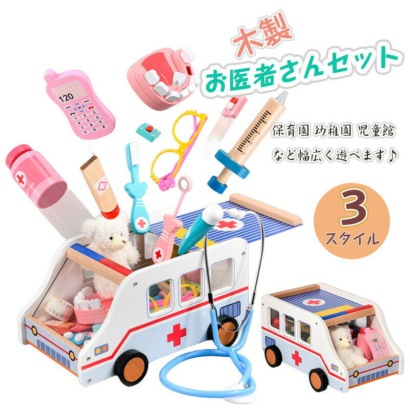 送料無料 お医者さんごっこ お医者さんセット 木製 歯医者 ごっこ遊びトイ 木製おもちゃ 知育玩具 29点セット 子供おもちゃ ままごと 医者のロールプレイ ミニドクター 救急車付け プレイングゲーム おキッズ 子供 誕生日 プレゼント 入園祝い