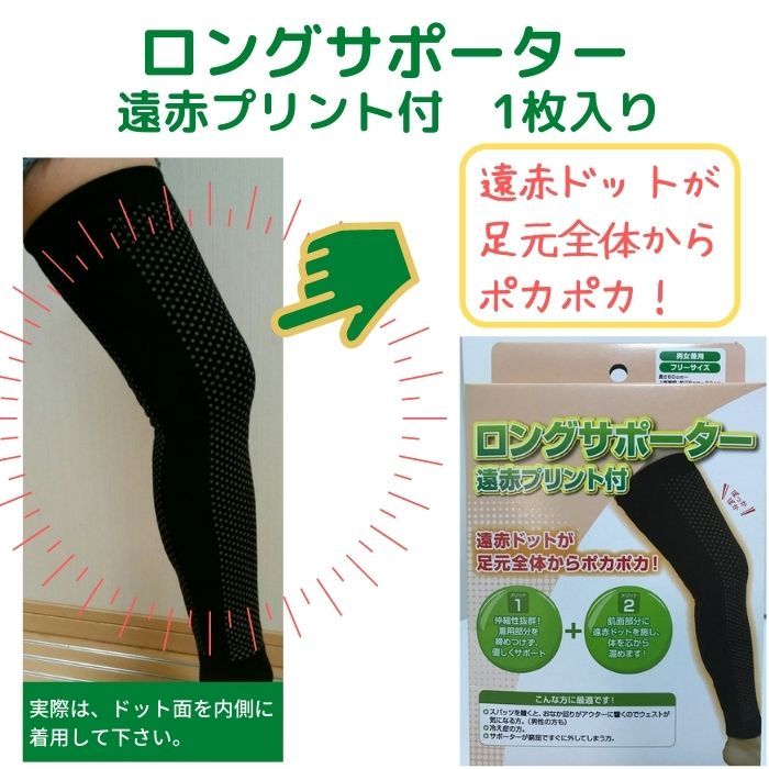 サポーター ロングサポーター 膝サポート 遠赤プリント付 ポカポカ 伸縮性 締め付けない 1枚入り 男女兼用 フリーサイズ ブラック