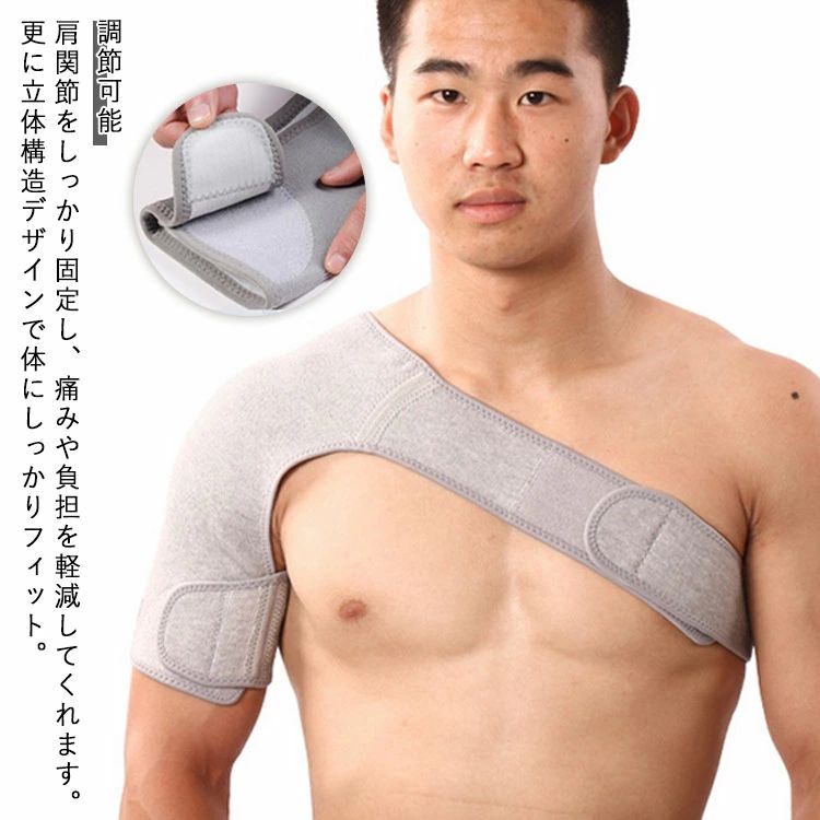 肩関節をしっかり固定し、痛みや負担を軽減してくれます。更に立体構造デザインで体にしっかりフィット。高い伸縮性があり日常の動きをサポートします。どんな体型の方にもしっかりフィットしてくれます。耐久性が高く、長くご利用いただけます。 ●製造ロットにより、細部形状の違いや、同色でも色味に多少の誤差が生じます。 ●パッケージは改良のため予告なく仕様を変更する場合があります。 ▼商品の色は、撮影時の光や、お客様のモニターの色具合などにより、実際の商品と異なる場合がございます。あらかじめ、ごください。 ▼生地の特性上、やや匂いが強く感じられるものもございます。数日のご使用や陰干しなどで気になる匂いはほとんど感じられなくなります。 ▼同じ商品でも生産時期により形やサイズ、カラーに多少の誤差が生じる場合もございます。 ▼他店舗でも在庫を共有して販売をしている為、受注後欠品となる場合もございます。予め、ごお願い申し上げます。 ▼出荷前に全て検品を行っておりますが、万が一商品に不具合があった場合は、お問い合わせフォームまたはメールよりご連絡頂けます様お願い申し上げます。速やかに対応致しますのでご安心ください。
