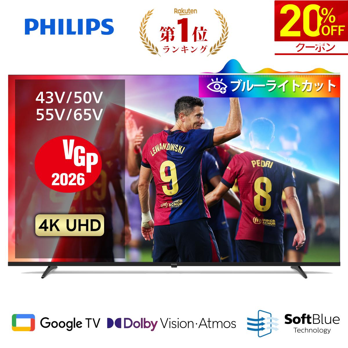 【クーポンで20%OFF】【VPG2026】Philips テレビ 43型 50型 55型 65型 チューナーレステレビ ブルーライトカット 4K グーグルテレビ Googleテレビ 液晶テレビ ネット動画 4kテレビ TV YouTube 壁掛け スマートテレビ 43インチ 50インチ 55インチ 65インチ