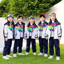 キッズ スクールウェア 男女兼用 レインボー柄 ウィンドブレーカー 3点セット 取り外し可能フード ジップアップ 防風 撥水 春秋 運動会 通園 通学 かわいい