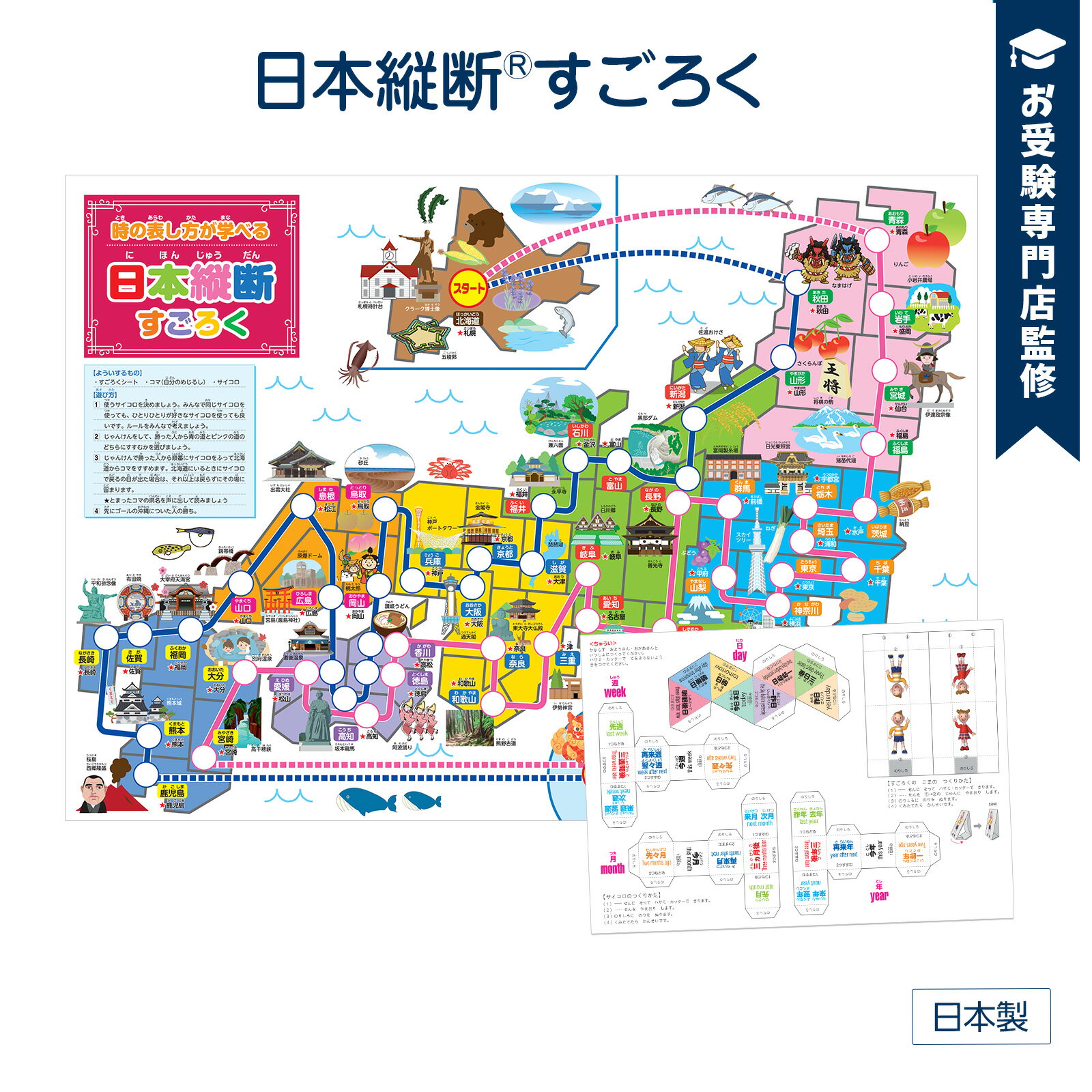 【お受験・面接対策教材】日本縦断(R) すごろくポスター サイコロ&コマセット 県庁所在地 時の表し方 大きなB2サイズ(728x515mm)の学習すごろく 工作で学習 知育玩具 小学校受験 小学校受験準備 日本製で安心安全 工作ポスター 小学校受験問題に対応 【工作学習ポスター】