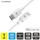 RAMPOW RAB01 MFi 1m White Type-C to Lightning Cable タイプ C to ライトニング ケーブル Power Delivery PD パワーデリバリー 急速充電 同期 ファーストチャージング typec タイプC usbc ケーブル 充電 送料無料