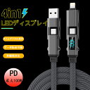 [4in1充電ケーブル] LEDディスプレイ 最大対応100W ケーブル タイプc to タイプc/USB to タイプc/タイプc to Lightning /USB to Lightning 5A-20V 急速充電 マルチ充電ケーブル PD Macbook/iPhone/iPad/Samsung Galaxy/Google Pixel/Switch 対応 1M/1.5M/2M 送料無料