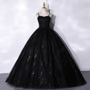 ウェディングドレス キャミドレス【着後レビュー特典】シンプルブラックドレス 肩紐 ブラック×金 スパンコール Aラインドレス ボリュームのあるチュールスカート 背中見せ フォトウェディング ブライダル 黒 インポート ブライダル パーティウエディング
