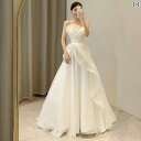 ウェディング ドレス セレモニー フランスの サテン ライト ウェディングドレス ハイエンド 2025 ワンショルダー ドレス スカート 女性 旅行 撮影 ドア ガーゼ