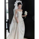 ウェディング ドレス セレモニー フィッシュ テールの メイン ウェディングドレス スカート プチレトロ エンゲージメント アウト ガーゼ チューブ トップ フレンチ ライト モーニング ガウン 女性 花嫁 サテン