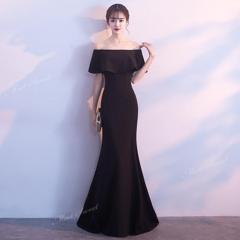 カラードレス パーティードレス マーメイドドレス オフショルダー サテン 無地 ウェディングドレス 演奏会 発表会 結婚式 二次会 トレンド シンプル 黒