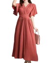 肌触りなめらかなさらっと綿・ポリエステル混の生地で、汗ばむ季節でもさらっとご着用頂ける素材です。軽い着心地でストレスフリーなのも嬉しいポイント。 華やかなフレアスリーブは気になる二の腕もカバーしてくれるのでう嬉しいポイント。ウエストはたっぷりギャザー入っていて切り替えも高めなのでスタイルアップ効果も抜群。裾部分が切り替えのプリーツデザインになっていて、大人可愛いシルエットに。 ウエストは脇のリボンで絞れるデザインなっており、スタイリングや体系に合わせてシルエットに変化が付けられます。脇にはファスナーつき、脱着やすい。 足元は、華奢なサンダルやミュールで女性らしさをプラスしたり、フラットシューズでリラックス感のあるスタイリングに仕上げるのもおすすめです。特別なシーン(結婚式、二次会、子供卒業会など)だけでなく、普段(デート、通勤、面接)着使いもしやすいワンピースdressです 洗濯機洗いで可能。商品により、サイズ感が違いますので、必ず各商品のサイズ表をご確認のうえ、ご注文お願いします。