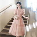 ◆◇◆売れている秘密◆◇◆ 魅力的なAラインシルエットで大人かわいい印象を演出。二の腕も美しくベールをかけて、スタイルアップを叶えます。 デコルテに薄いチュールやレースを使用して、上品な印象を演出。さりげない女性らしい魅力を引き出すドレス。 透け感の美しいレース袖は7分丈で、腕の気になる部分を隠してくれます。袖口の女性らしいデザインが腕のラインを美しく見せてくれます。 ハイウエストデザインでバスト部が強調され、ウエストはほっそりとしたラインを演出。高貴かつ優雅な女性らしいスタイルを叶えます。 バックファスナーがキレイに隠れ、脱着しやすい便利な仕様。まばゆい光に照らされ、輝くような美しいドレスはどんなパーティーシーンでも活躍します。 ◆◇◆注意事項◆◇◆ご覧のモニターの環境、撮影環境により実物と色味が異なって見える場合がございます。湿った状態で他のものと擦り合わせると色が移る恐れがあります。濃色品の洗濯時は、白色、淡色と分けて洗ってください。説明 「華やかなエレガンスを纏う、ショートスリーブのカクテルドレス。謝恩会や結婚式にぴったりの一着。レースと刺繍で彩られた、お姫様気分を味わえるドレス」 大人可愛い印象を演出するAラインデザインは、体型をカバーしつつスタイルアップを叶えます。 デコルテにチュールとレースを使用し、上品で女性らしい魅力を引き出します。 透け感の美しいレース袖は腕の気になる部分を隠しながら、女性らしいデザインが腕のラインを美しく見せてくれます。 ハイウエストデザインはバスト部を強調し、ウエストをほっそりと見せることで高貴かつ優雅な印象を演出します。 バックファスナーがキレイに隠れるデザインで、着脱も簡単。パーティーや結婚式などの特別なシーンで輝く一着に仕上げました。