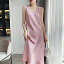 【20%OFFクーポン〜】女性のサテンドレス、シンプルでエレガントなワイドショルダーストラップ無地のスリップドレス、イブニングカクテルパーティーサマービーチサテンドレス ピンク,S