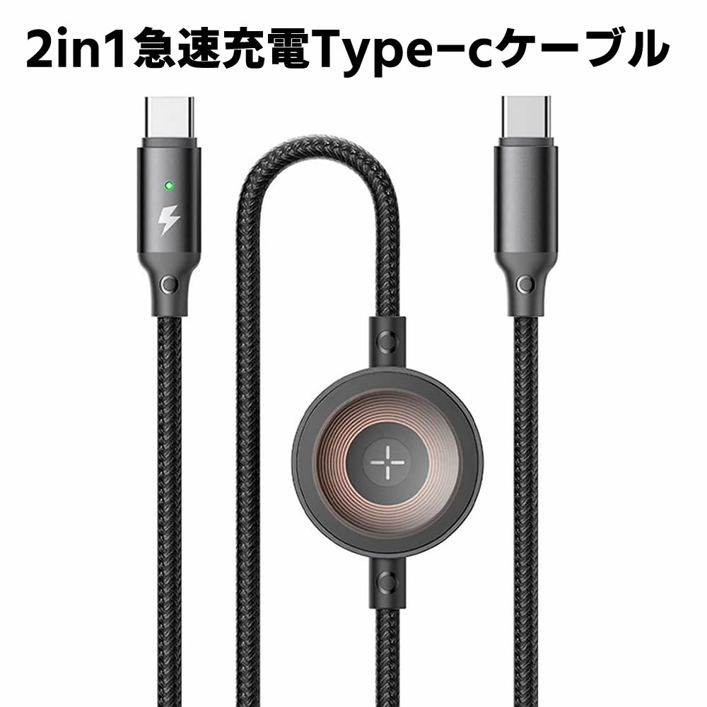 2in1 急速充電ケーブル USB-C to USB-C iWatch磁気充電ケーブル 60W PD対応 iPhone 16 充電器 Watch充電器 ウォッチ ケーブル 置くだけ充電 高速データ転送 Type-C ケーブル MacBook iPad iPhone 16/15 Xperia Galaxy Android その他USB-C機器対応 1.2m二股仕様