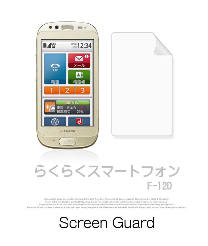 【F-12D らくらくスマートフォン】2枚セット!高光沢防指紋保護フィルム【あす楽】【らくらくフォン】【スマホケース】【F12D F 12D】【スマ-トフォン】【保護シート スクリーンガード】【docomo スマートフォン ドコモ】