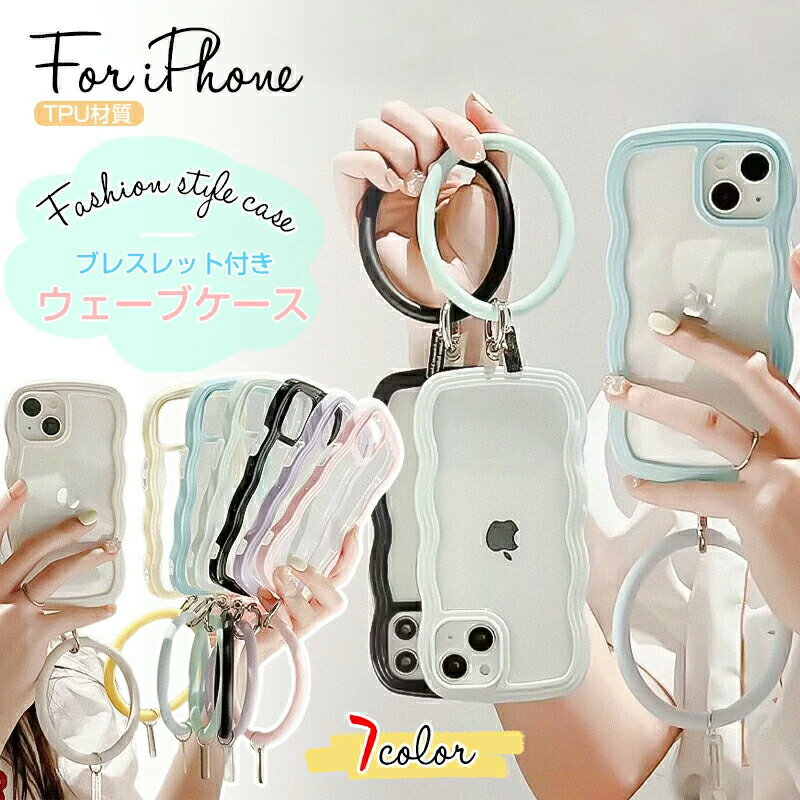 【 手首付】iPhone17Air 17Promax 16 16pro ケース iPhone16ケース クリア iphone15 Plus ケース iPhone15 ProMax iPhone 14 13 12 11 iphone ケース 背面 透明 可愛い 波 ウェーブ なみなみ 透明 大人かわいい シリコン 手首に掛け ストラップ付