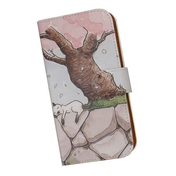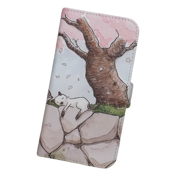 スマホケース 手帳型 全機種対応 プリントケース みはしたかこ 桜 猫 キャラクター ねこ(018)
