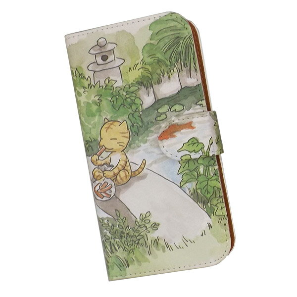 スマホケース 手帳型 全機種対応 プリントケース みはしたかこ 昼寝 猫 すいか ねこ 軒下(020)