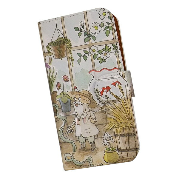 スマホケース 手帳型 全機種対応 プリントケース みはしたかこ 食人花 キャラクタ 金魚 猫 ねこ 麦わら帽子(019)