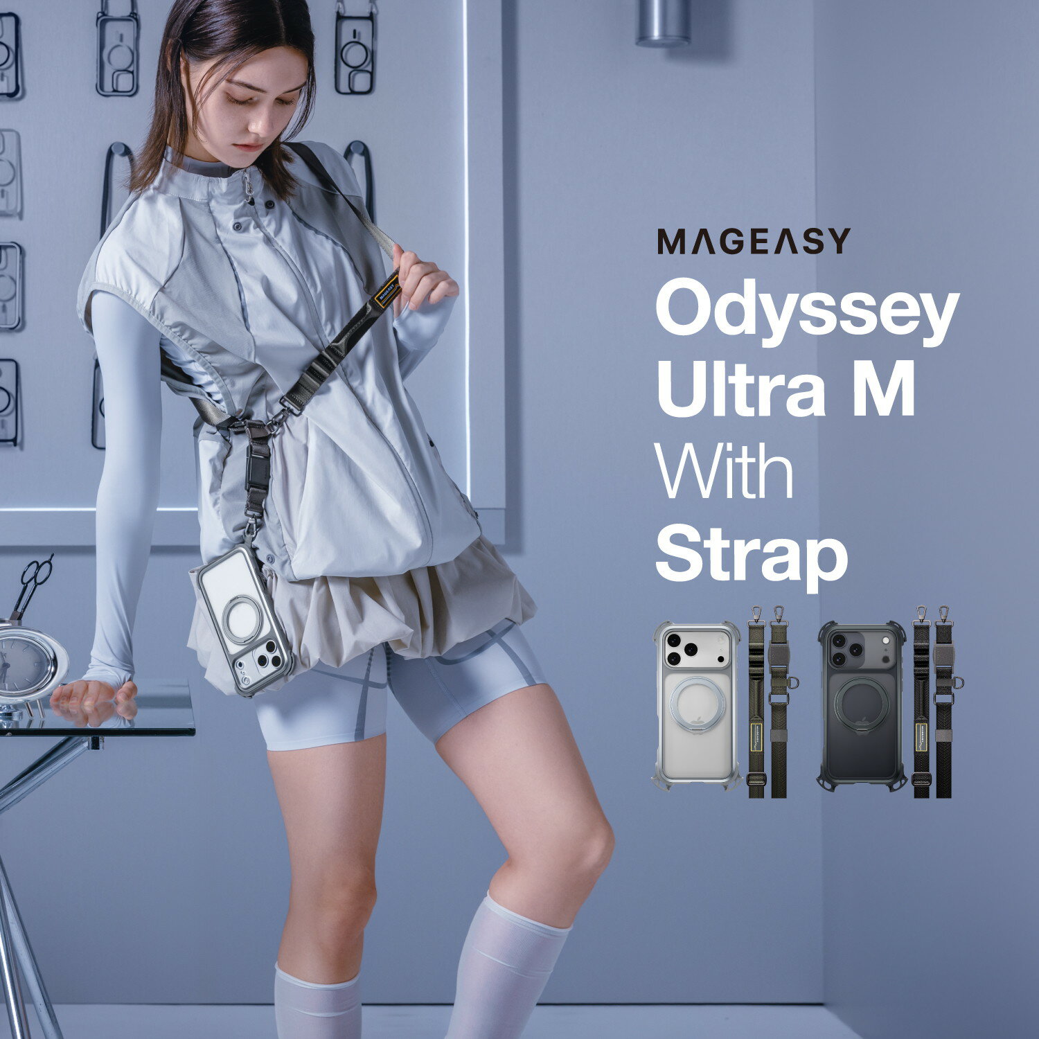 iPhone17Pro ケース ショルダー 耐衝撃 スマホショルダー iPhone17ProMax スマホケース iPhone17 Pro ケース ショルダー ブランド iPhone17 Pro Max ケース 肩掛け MagSafe対応 斜めがけ ショルダーケース 透明 MagSafe アイフォンケース17 プロ MagEasy Odyssey + Strap M
