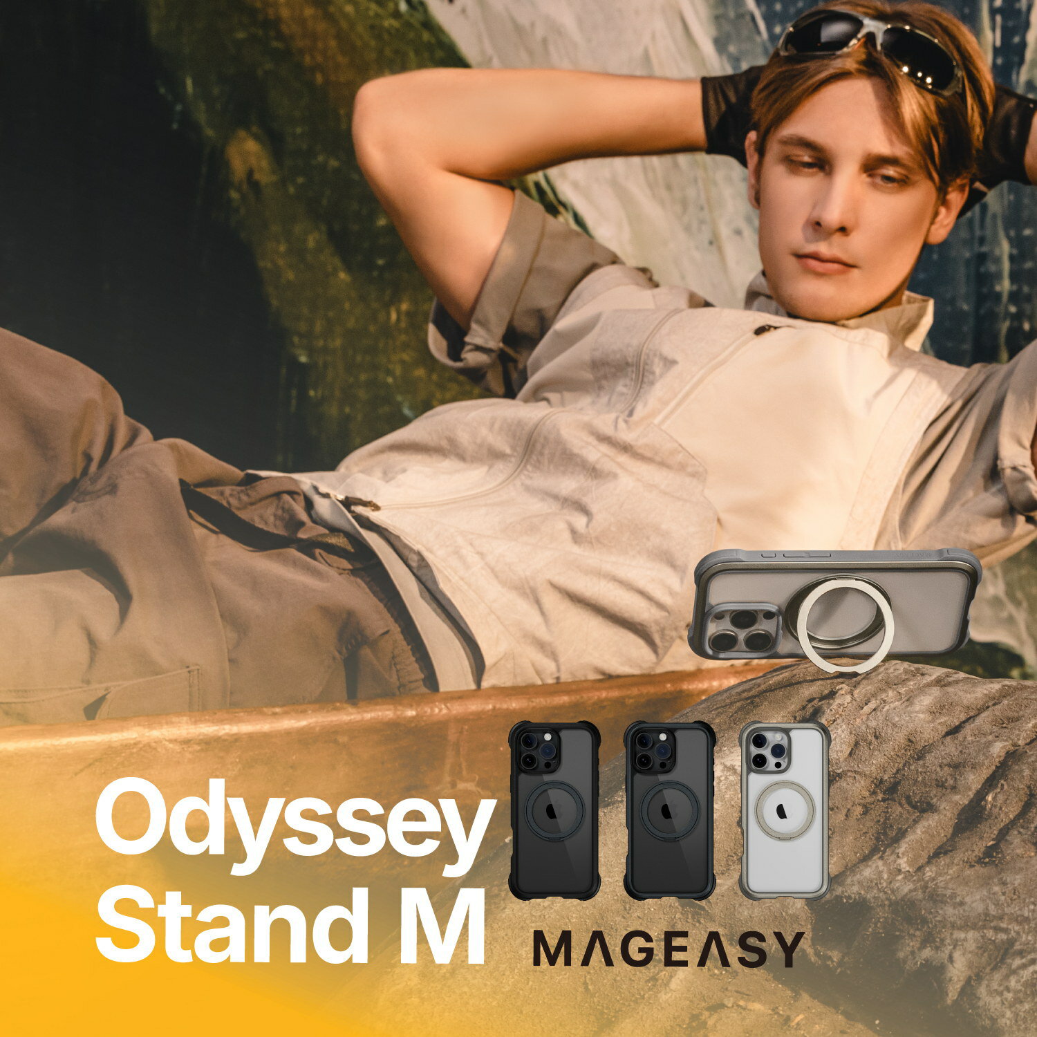 【マラソン★500円OFFクーポン配布中】 iPhone17Pro ケース クリアケース 耐衝撃 ストラップ用金具 付け替え可能 リングスタンド 360度回転 レディース メンズ MagEasy iPhone 17 Pro Odyssey Stand M 360 MagSafe対応 スタンド付き 耐衝撃ケース マグイージー 2025