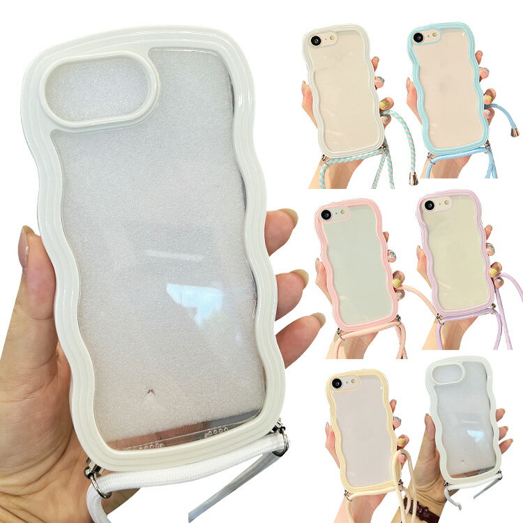 iPhone16e ケース スマホショルダー カバー ウェーブ 波型 クリアカバー 透明 TPU ソフト 滑り止め ケース 波状 可愛い お洒落 ショルダーストラップ 肩掛けベルト付き 長さ調節可能 シンプル Apple アップル アイフォン 16e スマートフォン/スマフォ/スマホケース/カバー