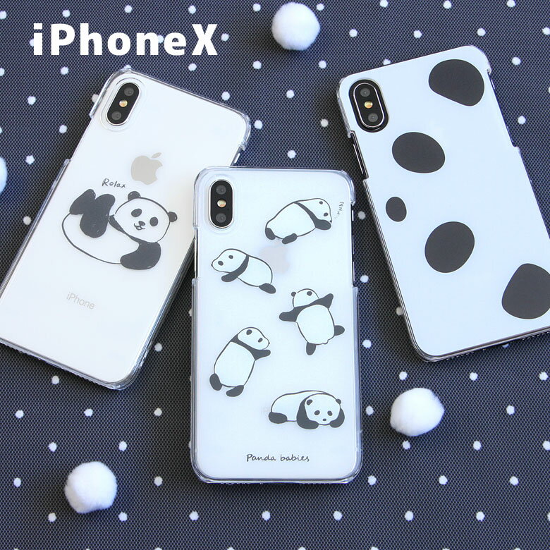 (クーポン配布中 11/19 23:59まで) コロコロパンダ iPhoneX 5.8インチモデル対応 スマホケース ハードタイプ クリアカバー ストラップホール付き ホワイト アニマルデザイン ぱんだ シンプル モノトーン グランサンク