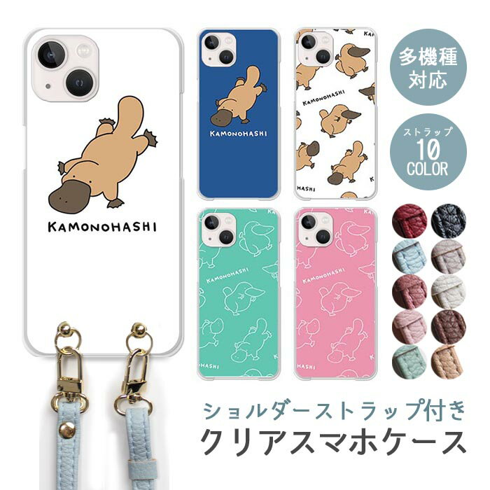 スマホケース ショルダーストラップ スマホストラップ クリアケース ハードケース 透明 カモノハシ鴨嘴 動物 アニマル iphone17 iphone16e iphone16 iphone15 iphone14 GooglePixel 9a AQUOS wish4 arrows We2 かわいい レディース おしゃれ
