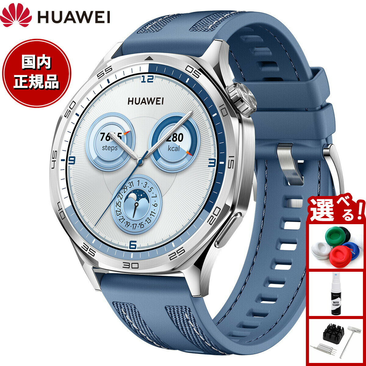 エッジの効いたデザインと豊富なスマート機能を搭載。全国2200以上のゴルフ場に対応したパワフルなゴルフ機能と新たに搭載されたカラーマップでスポーツ機能がさらに進化。新たに情緒測定も追加され、健康管理機能もアップデート。水泳、バスケットボール、パデルなど、100種類以上のワークアウトモードがあり、お気に入りのアクティビティに没頭し、データに基づいてワークアウトの評価や提案を受けることができます。14日間持続するバッテリーにより、毎日充電しなくても問題ありません。活動リング2.0では、毎日の「ムーブ」「エクササイズ」「スタンド」の目標を設定し、健康的な毎日をサポートします。商品名ファーウェイ HUAWEI スマートウォッチ WATCH GT5 46mm VLI-B19-BLU ウェアラブル 血中酸素 ゴルフナビ ブルー 腕時計 メンズ レディース商品番号VLI-B19-BLUブランドファーウェイ HUAWEIムーブメントクオーツ(充電式) ■防水:5ATM ※3+IP69K ※4■ディスプレイ:約1.43インチ AMOLED(有機EL)、466×466ピクセル、326PPI■タッチスクリーン:○■測位方式:GPS/GLONASS/Galileo/BeiDou/QZSS■センサー:加速度センサー/ジャイロセンサー/磁気センサー/光学式心拍センサー/気圧センサー/温度センサー■通信規格:Bluetooth 5.2BLE/BR/EDR■充電ポート:ワイヤレス充電■バッテリー持続時間 ※6:通常使用 約14日間/ヘビーユース 約9日間■重量:約48g(ベルト含まず)■対応OS:Android 8.0+/iOS 13.0+■手首サイズ:140〜210mm【主な機能】■音楽保存再生:○ ※11■スマートフォン音楽再生操作:○■ワークアウト●ゴルフナビ日本全国2200以上のゴルフ場に対応し、フェアウェイ、グリーンの詳細が一目瞭然。搭載されている高精度なGPSにより、現在位置からグリーンまでの距離をリアルタイムに表示が可能に。コース全景/風速/風向き/スコアカード/距離計測●20種類以上のワークアウトモード屋外:ランニング、トラックランニング、ウォーキング、サイクリング、オープンウォーター、登山、ハイキング、トレイルラン、スキー、スノーボード、クロスカントリースキー、トライアスロン、ゴルフコースモード屋内:ランニング、ウォーキング、サイクリング、プール水泳、ドライビングレンジ、縄跳び、エリプティカル、ローイング、自由トレーニング●6種類のワークアウトを自動識別:屋内外ランニング、屋内外ウォーキング、エリプティカル、ローイング●100種類以上のカスタムワークアウトモード●13種類のランニングコース■ヘルスケア ※5●活動リング:ムーブ消費カロリー、エクササイズ時間、スタンド時間●HUAWEI TruSenseランニング能力指数、最大酸素摂取量、トレーニング負荷、回復時間/24時間モニタリング:心拍数、睡眠、血中酸素レベル、ストレス、情緒/呼吸エクササイズ/ボディメーカー/Health Clovers/生理周期カレンダー■スマートアシスタントスマート通知(着信/メッセージ/メール/カレンダー/SNSアプリ)/クイック返信 ※12Bluetooth通話/スマートフォン探索/カレンダー/アラーム設定/ストップウォッチ/天気情報/懐中電灯/月相/リモートシャッター ※13※1:HUAWEI WATCH GT4との比較です。※2:HUAWEI Healthアプリの文字盤ストアから文字盤をダウンロードできます。※3:本製品は5ATM規格の防水防塵性能に準拠しています。ISO規格22810:2010に基づく水深50メートルでの耐水性を備えています。また、熱水シャワー、温泉、サウナ(スチームルーム)、スキューバダイビング、高飛び込み、高圧洗浄など高水圧、高温、高湿、高速水流を伴うシーンでは使用できません。防滴、防水、防塵は永久的なものではなく、日々の着用により保護性能が低下する場合があります。※4:本製品はIP69K規格の防護性能に準拠しています。熱水シャワー、温泉、サウナ(スチームルーム)、スキューバダイビング、テクニカルダイビング、高飛び込み、高圧洗浄など高水圧、高温、高湿、高速水流を伴うシーンでは使用できません。海水でウォッチを着用した後は、淡水でゆっくりとすすいでください。メタルベルトは水泳や汗に耐えられるようには設計していません。そのため、このような状況では、ほかのタイプのベルトを着用することをお勧めします。防滴、防水、防塵は永久的なものではなく、日々の着用により保護性能が低下する場合があります。※5:本製品は日常的な運動・健康管理のための製品であり、医療機器ではありません。本製品のデータは医療行為または精度を要する業務・専門的な計測にはご使用いただけません。本製品及び関連アプリの「健康管理」にかかわる機能は、健康な個人の健康の増進を目的とするものであり、疾病の診断、予防や治療を目的とするものではありません。健康管理や生活習慣にかかわる表示や助言は健康な方への一般的なものであり、個別の事情や医師の指示、治療計画がある場合にはそれらを優先してください。※6:通常使用は、以下の条件でテストされています:心拍数測定ON、睡眠測定ON、毎週90分のワークアウト(GPSON)、毎週30分の音楽再生、毎週30分の