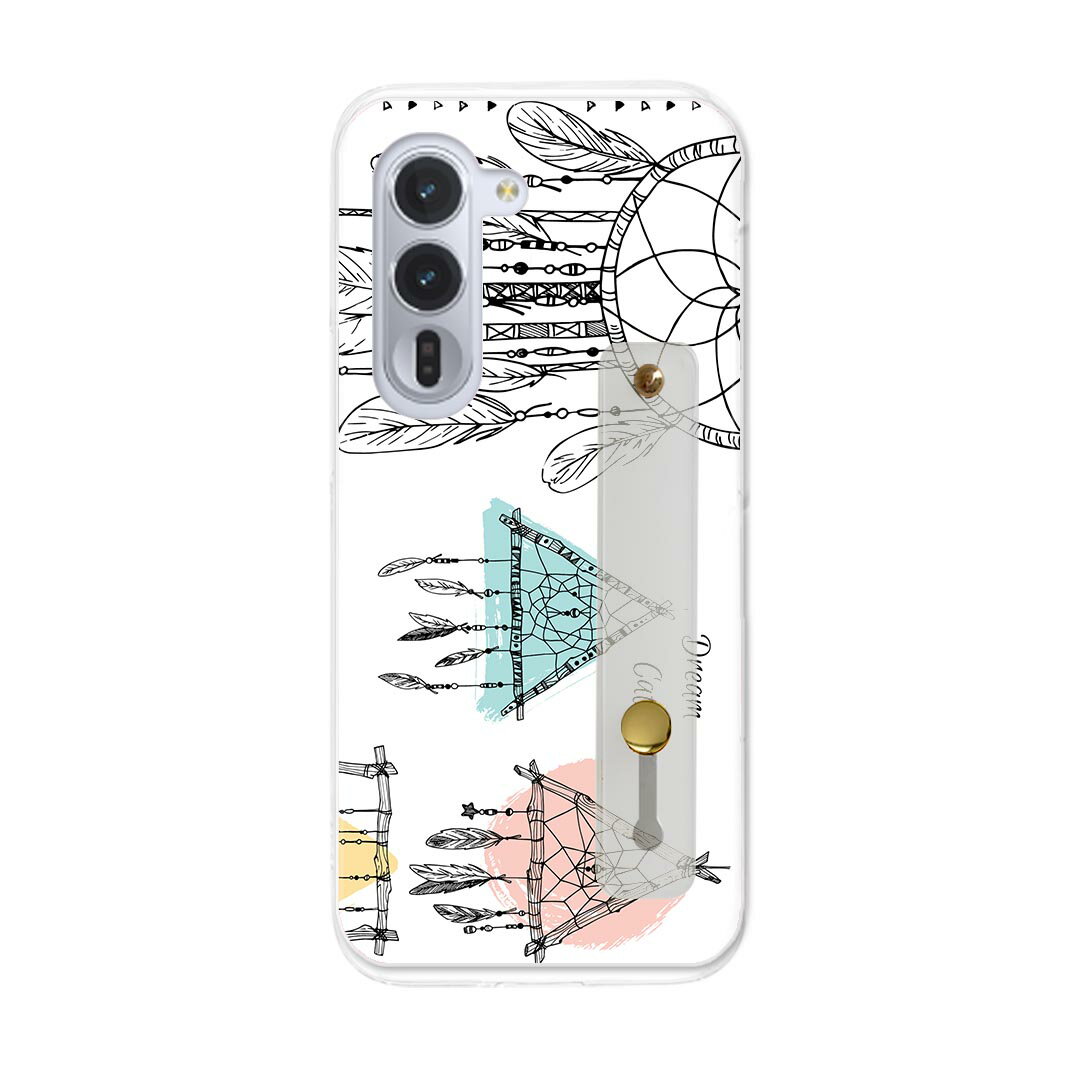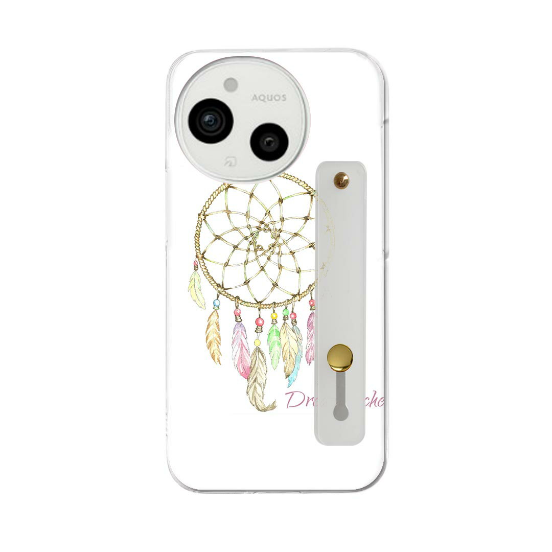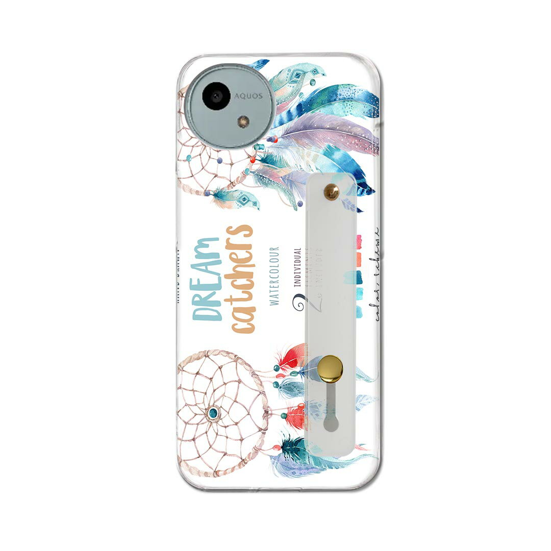 AQUOS Sense9 / sense10 ケース SH-53E SHG14 SH-M29 / SH-53F SH-M33 対応ケース 各種共通対応 ハードケース スマホ ベルト付 スマホバンド 落下防止 シリコン スタンド機能付 片手持ち カバー 携帯リング フィンガーリング 角度調整 014263 ドリームキャッチャー羽根