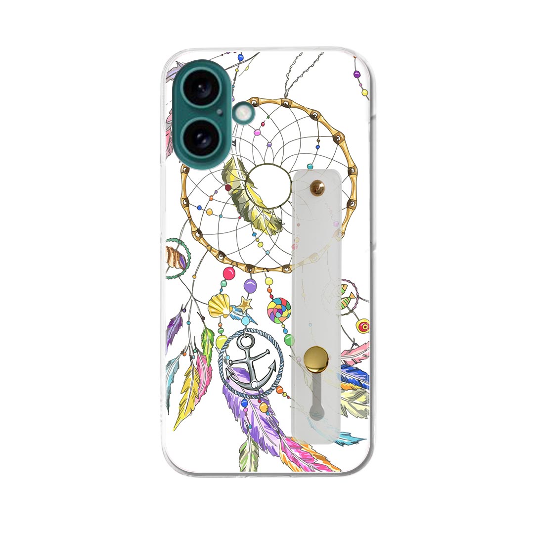 【送料無料】iPhone 16 用 ハードケース スマホ ベルト付 スマホバンド 落下防止 シリコン スタンド機能付 スリム 背面 片手持ち カバー 携帯リング フィンガーリング 角度調整 011775 ドリームキャッチャー 青