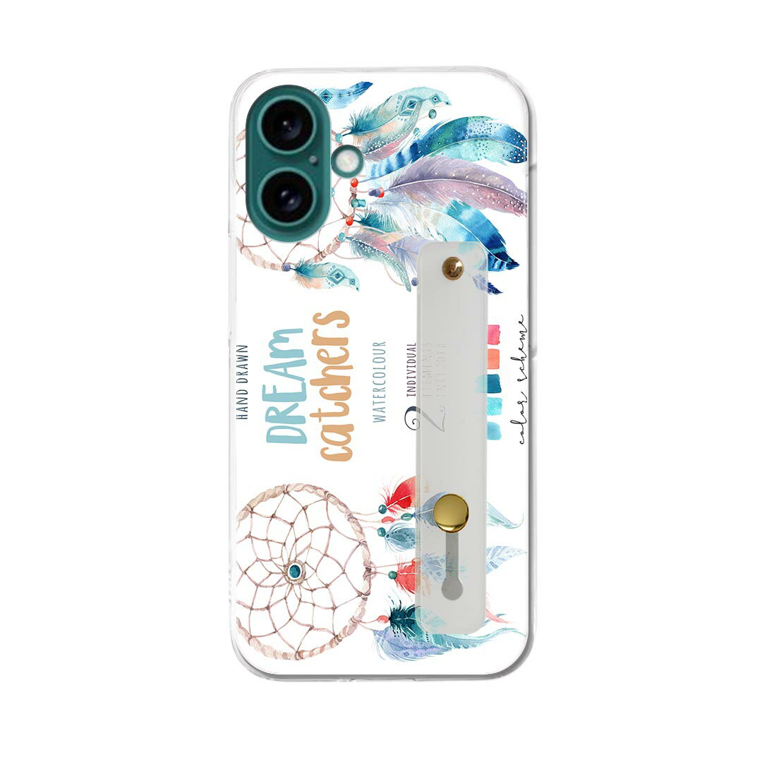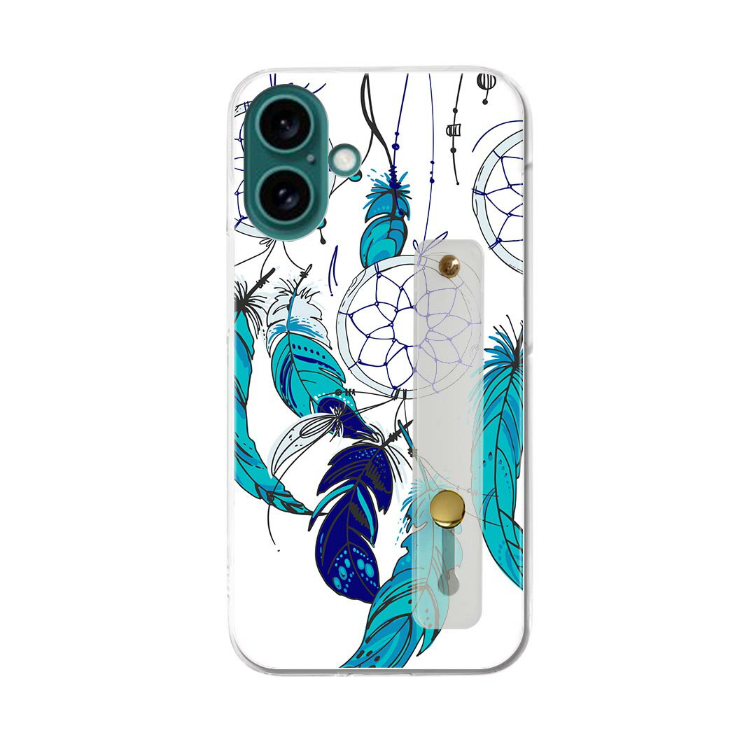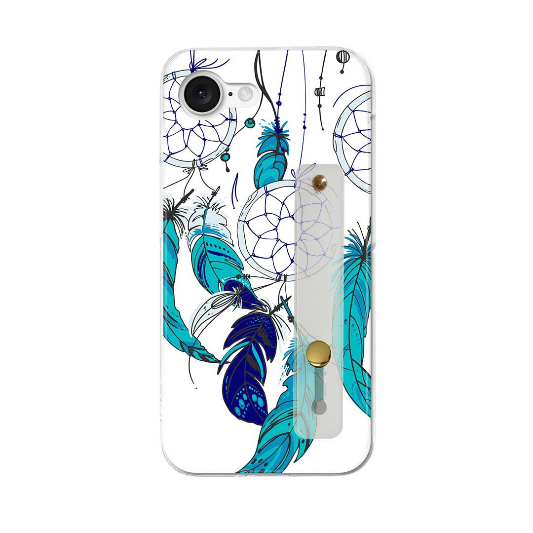 【送料無料】iPhone 16e 用 各キャリア 共通対応 iphone16e ハードケース スマホ ベルト付 スマホバンド 落下防止 シリコン スタンド機能付 スリム 背面 片手持ち カバー 携帯リング フィンガーリング 角度調整 011775 ドリームキャッチャー 青