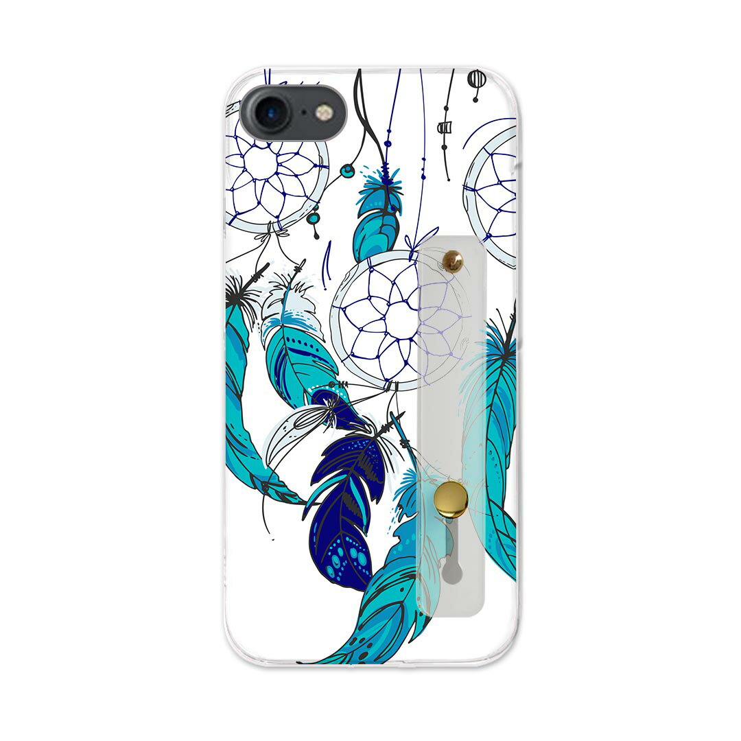 【送料無料】iPhoneSE ケース 第2世代 / 第3世代 iPhone 7 / iPhone 8 共通対応ハードケース スマホ ベルト付 スマホバンド 落下防止 シリコン スタンド機能付 スリム 背面 片手持ち カバー 携帯リング フィンガーリング 角度調整 011775 ドリームキャッチャー 青