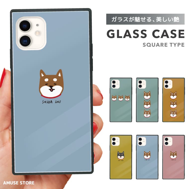 iPhone16 ケース iPhone15 スマホケース 韓国 ガラス スクエア iPhone16Pro iPhone14 Plus iPhone13 mini iPhone SE ケース TPUケース ガラスケース おしゃれ かわいい 柴犬 ワンちゃん シバ 愛犬 イラスト 和 日本 かわいい