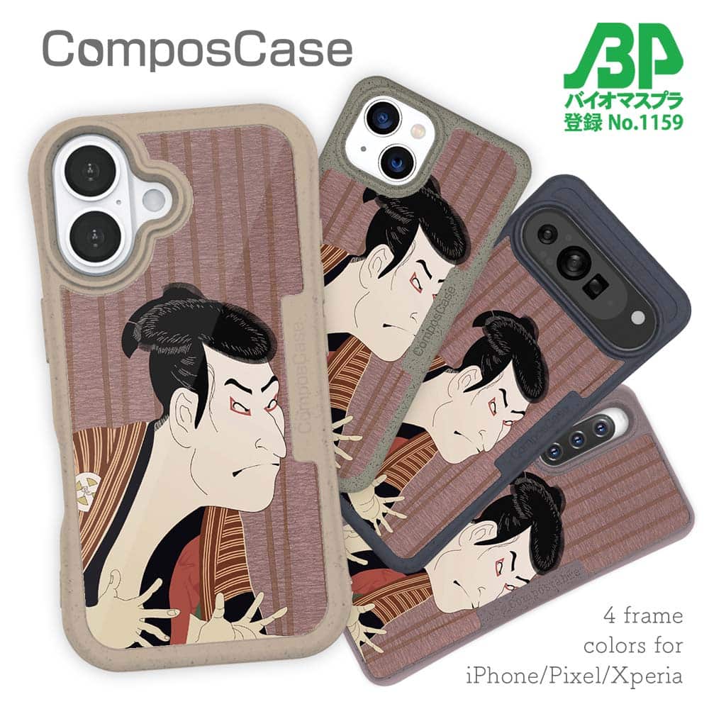 コンポスケース & 着せ替え デザインシート セット Google Pixel9a Pixel9 Pro XL Pixel8a Pixel8 Pro Xperia 10 V ケース 背面 生分解性 4色 東洲斎写楽 三世大谷鬼次の奴江戸兵衛のイラスト