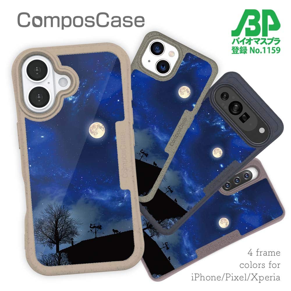 コンポスケース & 着せ替え デザインシート セット Google Pixel9a Pixel9 Pro XL Pixel8a Pixel8 Pro Xperia 10 V ケース 背面 生分解性 4色 猫 ネコ 星の下の丘