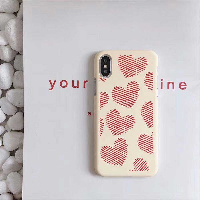 【メール便送料無料】≪大人気ハートシリーズ≫お洒落なヌーディカラーが大人女子にぴったり♪ラフにデザインされたボーダーのハートいっぱいのスマホケース iPhone6,6S,6 Plus,6S Plus,iPhone7,8,7 Plus,8 Plus,iPhoneX,XS,iPhoneXR,iPhoneXS Max