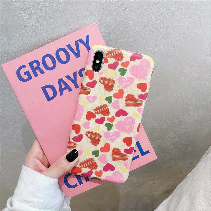 【メール便送料無料】≪大人気ハートシリーズ≫お洒落なヌーディカラーが大人女子にぴったり♪ラフにデザインされたカラフルなハートいっぱいのスマホケース iPhone6,6S,6 Plus,6S Plus,iPhone7,8,7 Plus,8 Plus,iPhoneX,XS,iPhoneXR,iPhoneXS Max