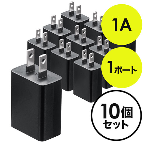 USB充電器 1ポート 1A コンパクト PSE取得 USB-ACアダプタ iPhone充電対応 ブラック 10個セット EZ7-AC026BKX10【ネコポス対応】