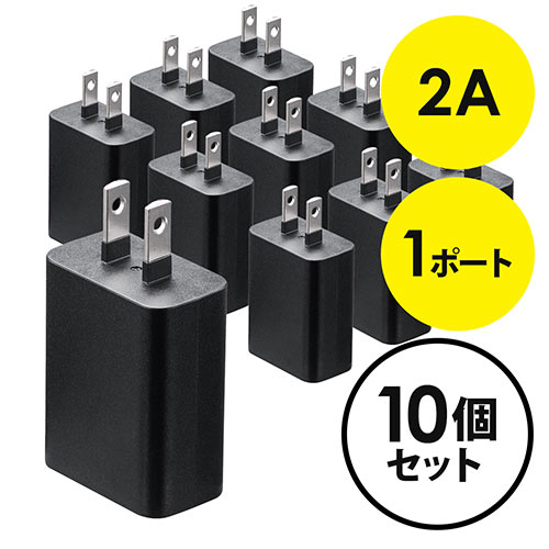 USB充電器 1ポート 2A コンパクト PSE取得 iPhone/Xperia充電対応 ブラック 10個セット EZ7-AC021BKX10【ネコポス対応】