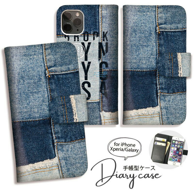 Xperia 10VII 1VII 1VI 10VI 手帳型 ケース Xperia10 IV 10iii ケース 手帳 カバー スマホケース かわいい おしゃれ デニムプリント パッチワーク ロゴ NYC ブルックリン [SO-52C/SOG07/SO-51C/SOG06/SO-53B/SOG05/SO-51B/SOG03/SO-41B/SO-52A]