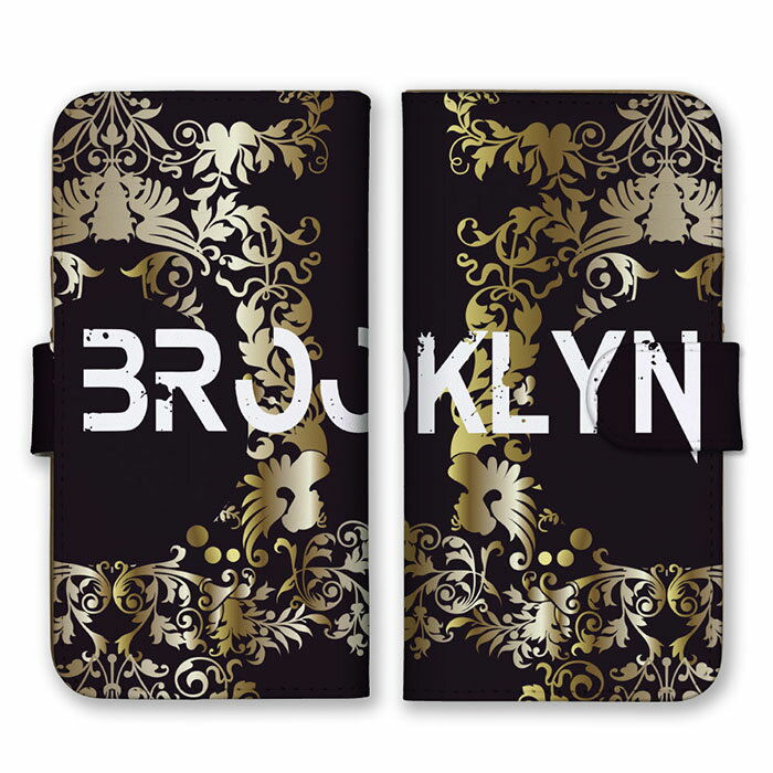 全機種対応 手帳型スマホケース iPhone14 13 Pro Max対応 ブラック ゴールド 黒色 金色 ダマスク柄 おしゃれ 上品 シンプル BROOKLYN ブルックリン カードホルダー付き カード収納 合皮 合成レザー 手帳タイプ スマートフォン ケース カバー