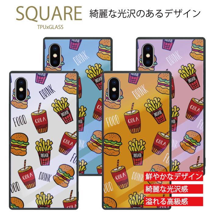 iPhone カバー スマホケース ガラスケース 送料無料 iPhone12 pro iPhone11 XS iPhone8 SE 第2世代 シリコン ガラス ハンバーガー イラスト かわいい 人気 デザイン アメリカ ペア プレゼント オシャレ ロゴ キャラクター ブルックリン