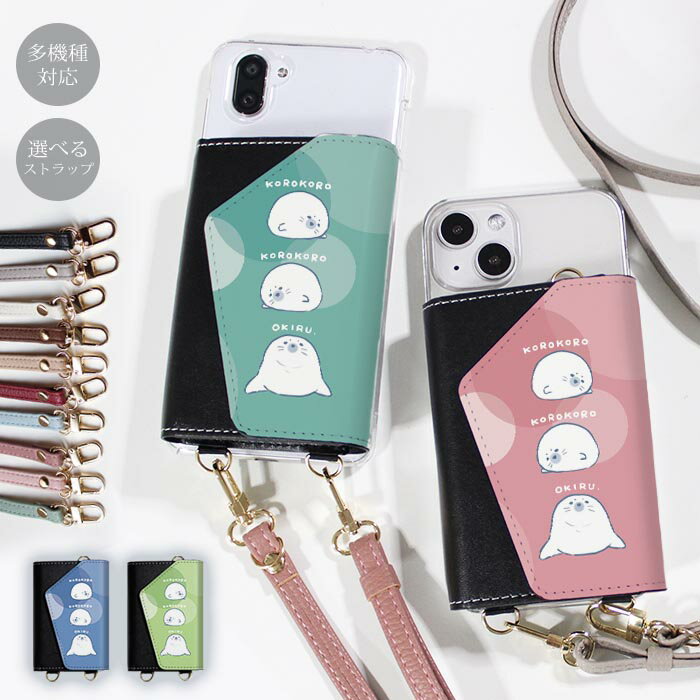 スマホショルダー スマホケース ママ メンズ 大人 かわいい 財布 ほぼ 全機種対応 韓国 ショルダー ショルダータイプ おしゃれ ストラップ 落下防止 ゴマフアザラシ 赤ちゃん 小銭 お財布 カード 透明 レディース 調節可能 くすみカラー