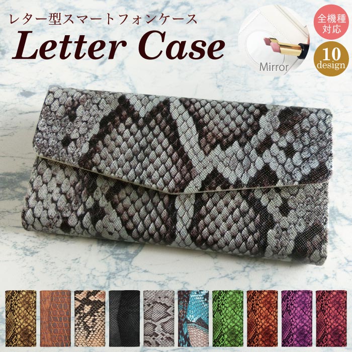 【ポイント10倍★20日まで!】 全機種対応 iPhone15 pro max iPhone14 13 Max SE 対応 レター型 ミラー付 鏡付 スマホケース 手帳型 galaxy AQUOS sense5G 4 3 plus lite R6 pixel5a パイソン ヘビ柄 かわいい Python