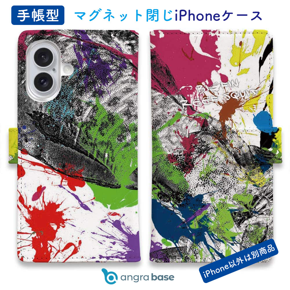 スマホケース 手帳型 ベルトなし マグネットなし iPhone17 Pro Max iPhone Air iPhone16e Pro Max 16 Plus 15 Pro Max 14 Plus Xperia 10 VII Galaxy AQUOS Pixel10 Pro XL 釣り 魚 ルアー アオリイカ ペンキペイント