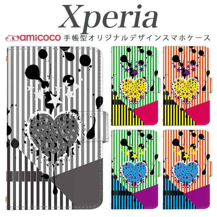Xperia 10V 手帳型 スマホケース Xperia 10 iii Xperia ACE iii 手帳型 スマホケース ポップ ストライプ ハート ペイント 父の日 格安 定期 sog08 so-01m sov43 so-53d SOG10 SO-52A xperia so-01m xperia sog12 SOG11 SO-03L SOG06 Xperia 5 IV Xperia 8 sog03 so-54c