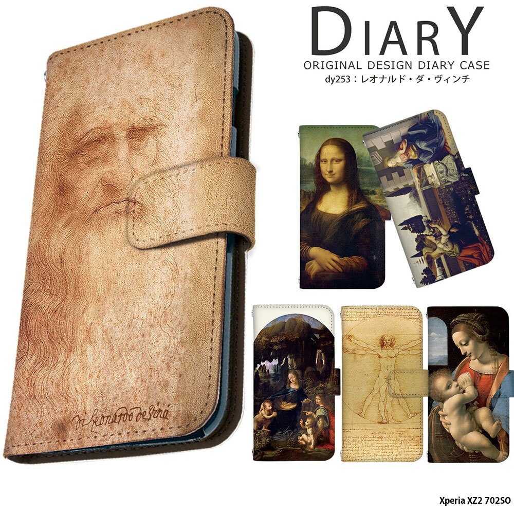 スマホケース Xperia XZ2 702SO ケース 手帳型 エクスペリア カバー デザイン レオナルド・ダ・ヴィンチ 絵画 名画 作品 グッズ 芸術 アート モナ・リザ 最後の晩餐 サルバトール・ムンディ ルネサンス期 代表作