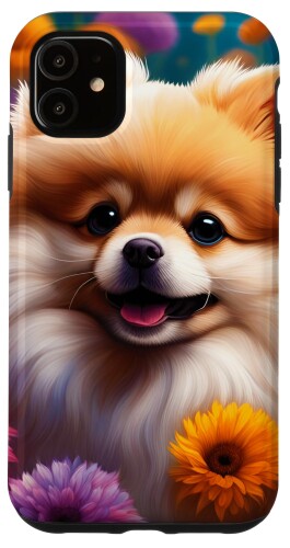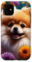 iPhone 11 ファンタジーキュートビビッドポメラニアンベビーフラワー スマホケース