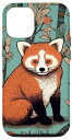 iPhone 15 レッドパンダ フローラル - ウィリアム・モリススタイル アールヌーボー スマホケース